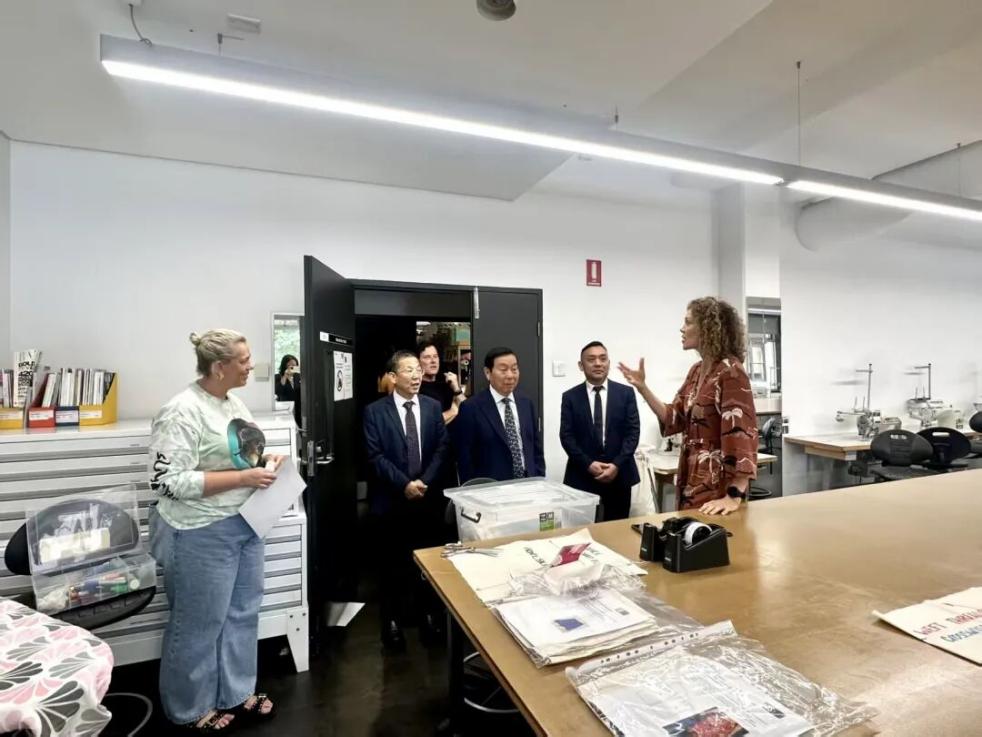 在悉尼,代表团访问新南威尔士州政府技术与继续教育学院时装设计教学中心(TAFE NSW FDS),与学院相关负责人就实践导向教学模式、学生实习与技能培养以及国际合作路径进行了交流,深入了解其产教融合和行业协同育人的办学经验。