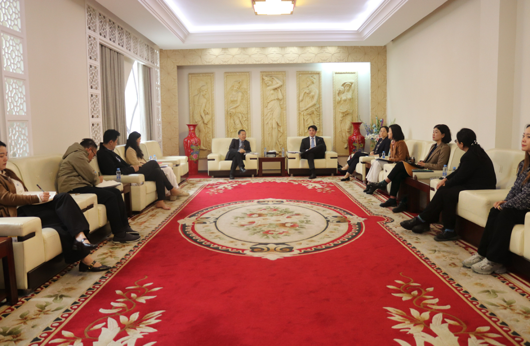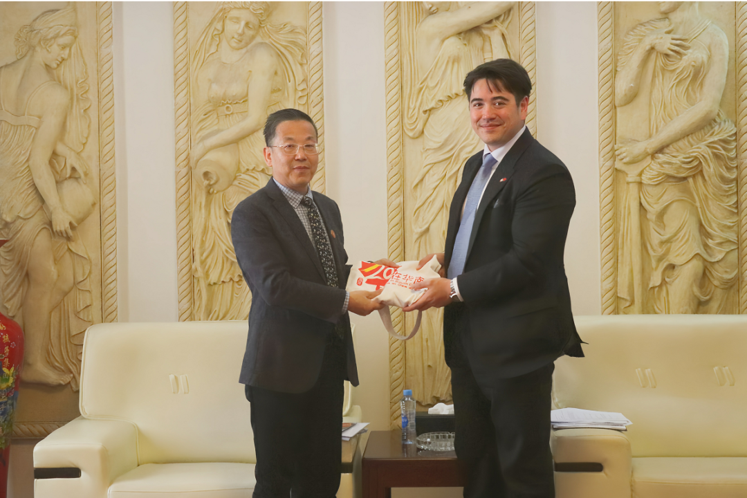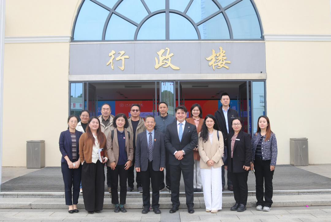 2025年11月11日上午11:00,加拿大驻广州总领事馆副领事Jon Barrett(吴俊才)先生一行莅临我校访问交流,旨在深化中加两国教育领域合作,共探时尚产业人才培养新路径。交流座谈会在学校行政楼二楼接待室举行,国际交流与合作处处长刘有发热情接待了来访嘉宾并主持交流座谈会。服装设计学院副院长罗密、服装工程学院副院长赵永刚、时尚传媒学院副院长李有为、商学院副院长刘春生及国际交流与合作处全体工作人员参与座谈。