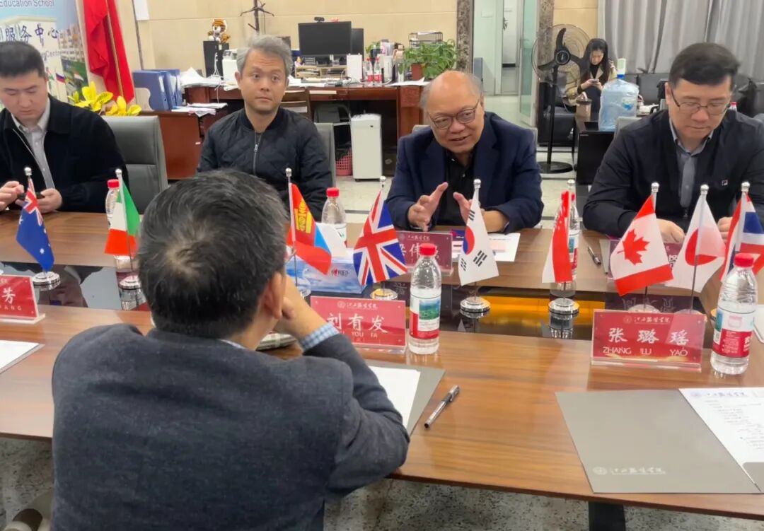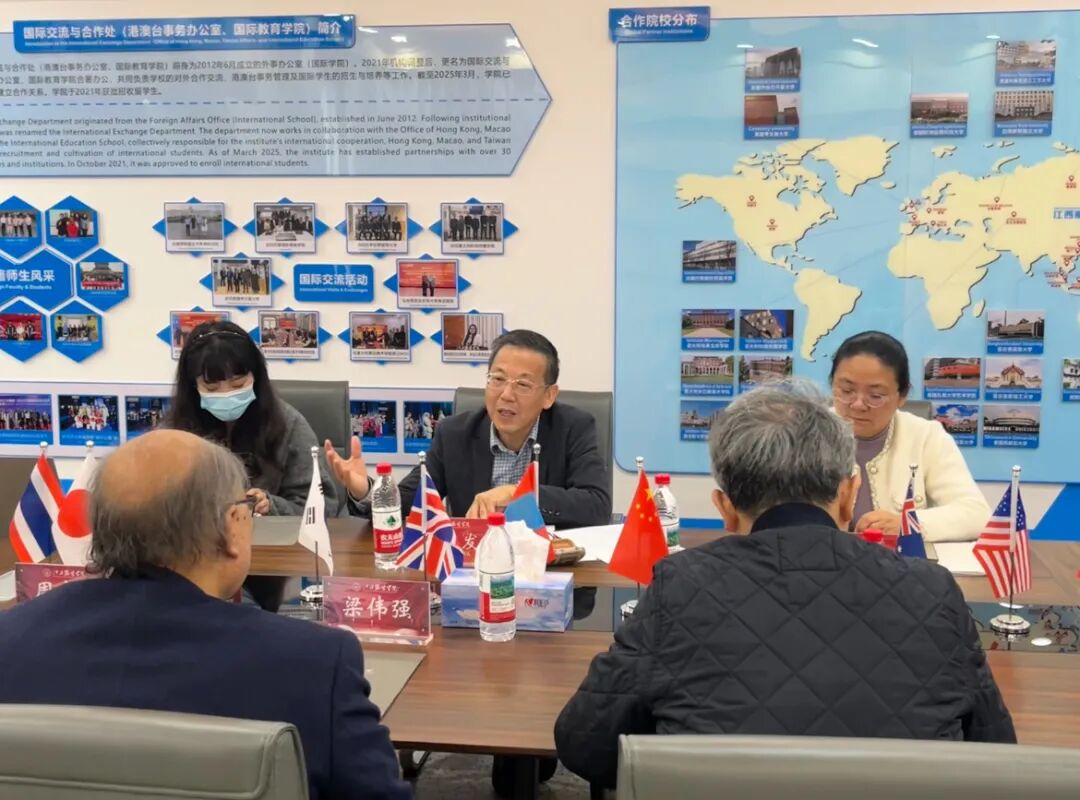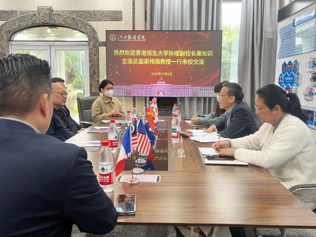 2025年11月4日上午,香港恒生大学协理副校长兼知识交流总监梁伟强教授一行到访江西服装学院,本次交流活动由江西服装学院国际交流与合作处处长刘有发主持。双方首先共同观看江西服装学院宣传片,直观了解学校办学特色与发展成果,随后围绕师生互访等合作项目展开深度交流。