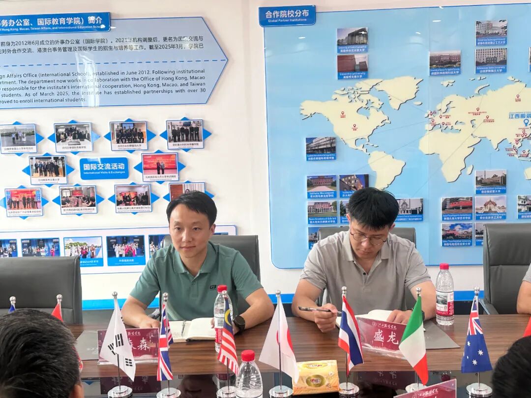 为深化国际教育合作,推动校际交流与人才培养国际化进程,2025年9月19日下午2时,泰国皇家园大学(Rajapark Institute)国际教育中心主任杨森森、驻江西办公室副主任盛龙一行来访我校。