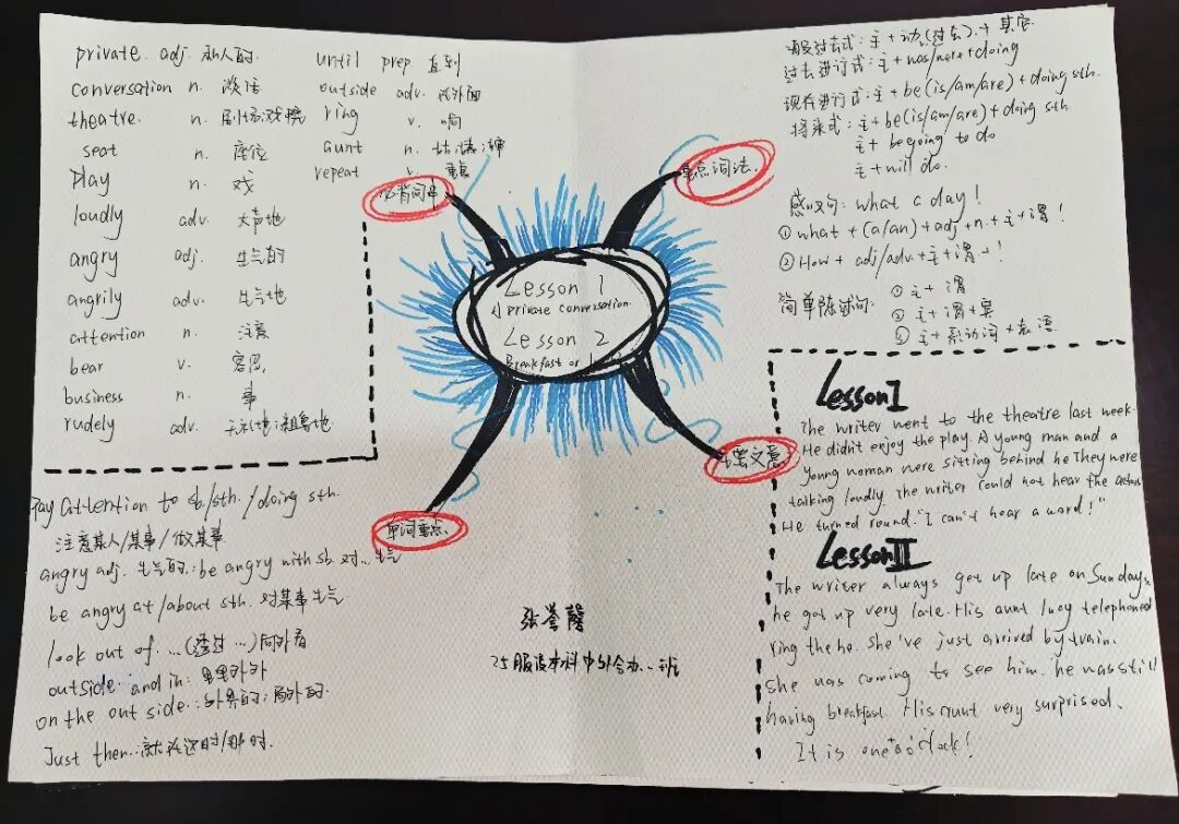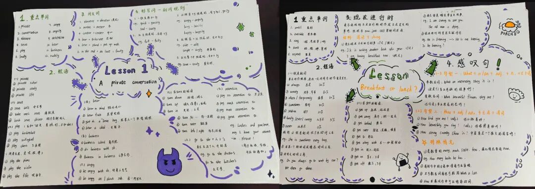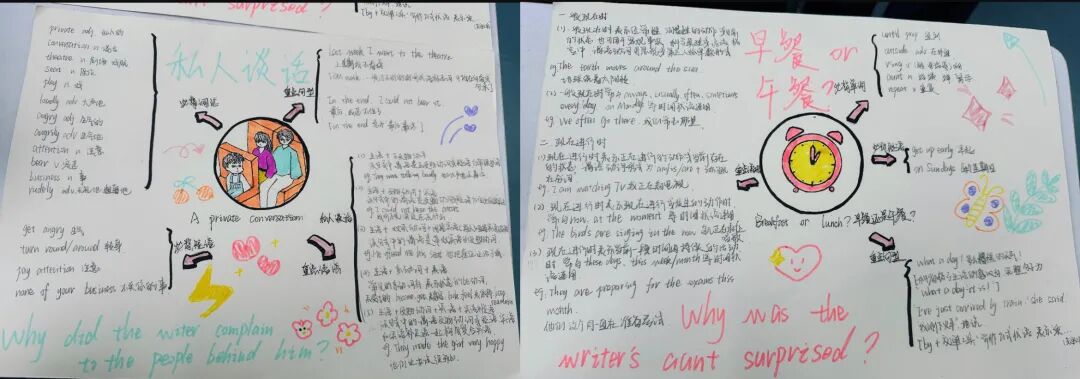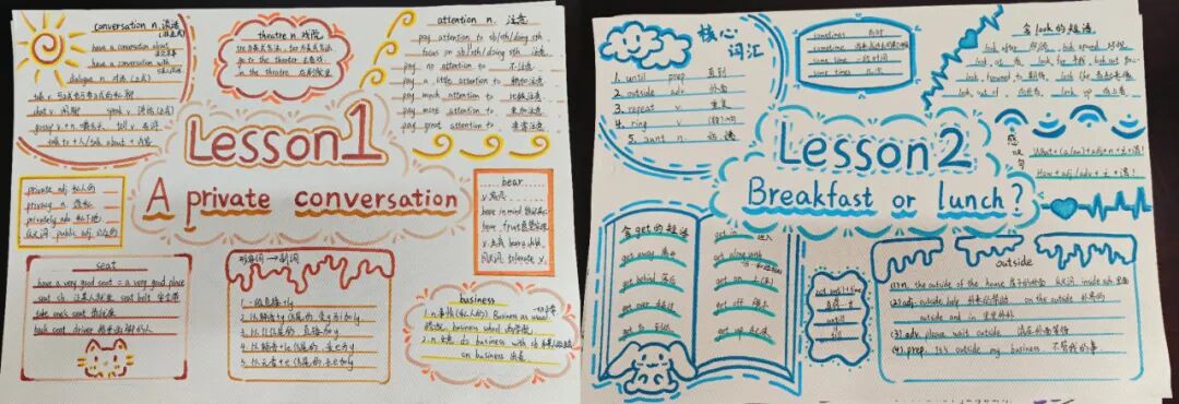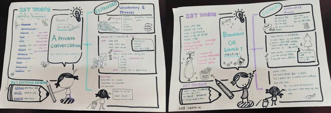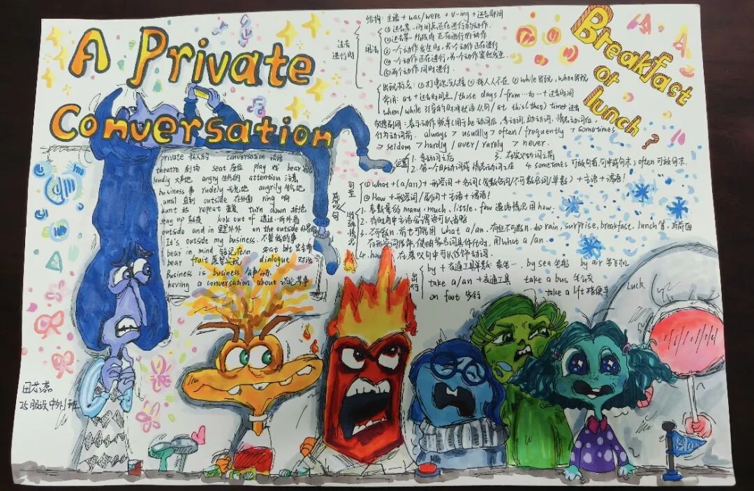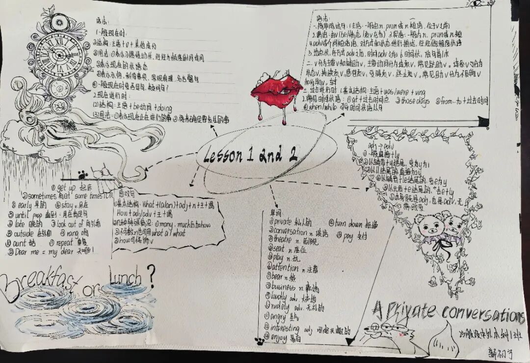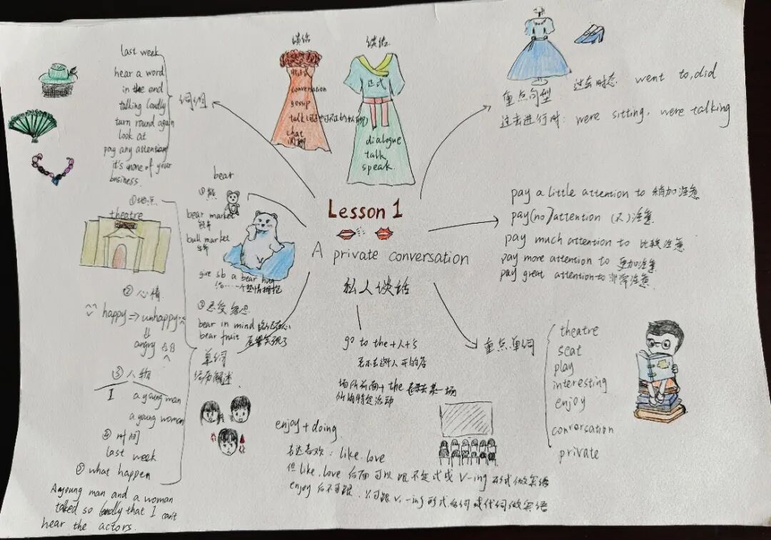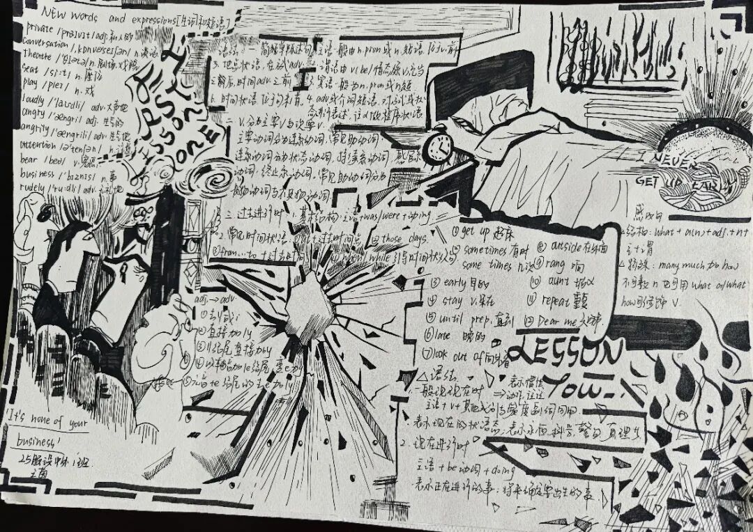 这些色彩丰富、图文并茂的作品,源于英语课堂中的主题学习。同学们将单元词汇、语法重点与服装设计专业表达相结合,用画笔和英文梳理知识、表达观点。学习,因此变得可触、可感、可展示。