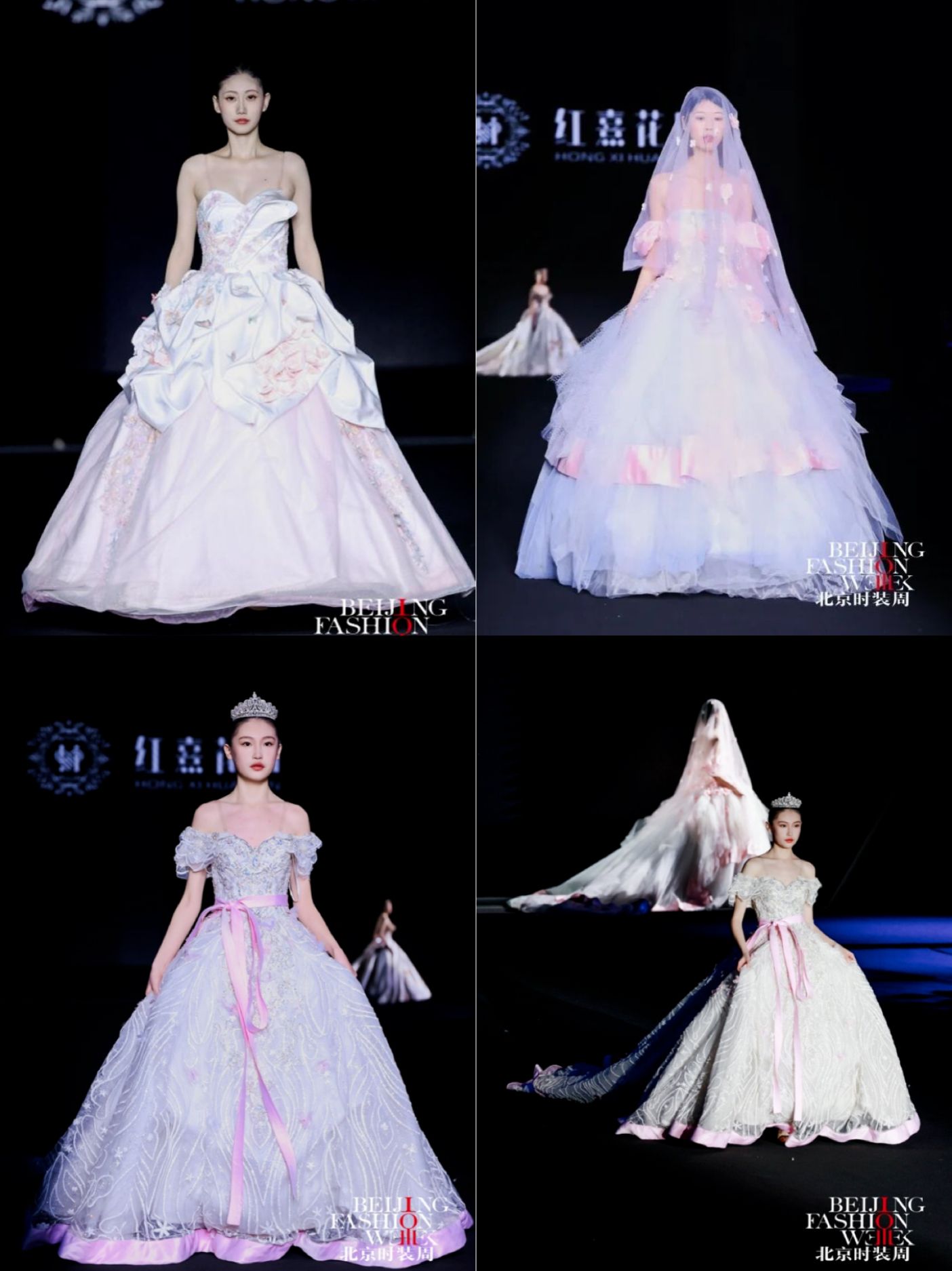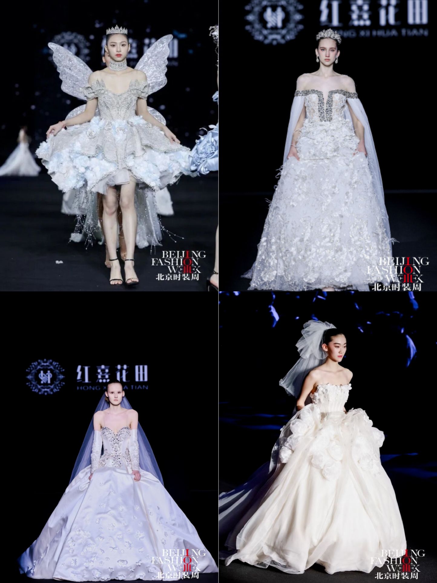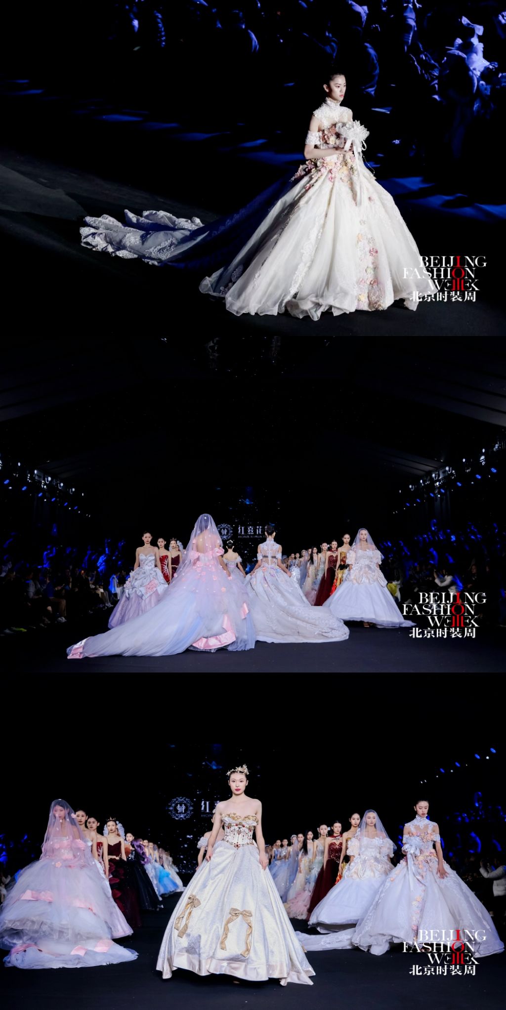 本季发布会以 “花田蕴生·绽放京彩”为主题,设计以“花田意象”为创作原点,将自然花田的生长与盛放转化为婚纱礼服的艺术语言,通过结构、色彩与材质的层层递进,构建一段从梦境萌芽到誓约永恒的情感叙事。在传统婚纱设计语言的基础上,系列作品融入立体装饰、结构塑形与现代工艺,使浪漫诗意与当代审美交织共生,呈现中国婚纱设计的新生力量。作品共呈现花影初梦、花海流光、炽焰花宴、花田誓约四大系列,以花田在不同光影时刻的变化隐喻爱情的不同阶段,在色彩与廓形的演进中描绘一段由初见、悸动到炽热、永恒的情感旅程。