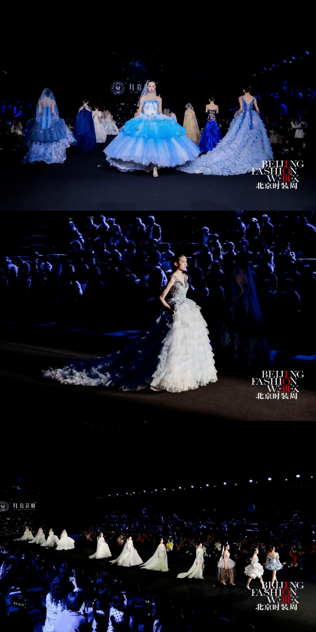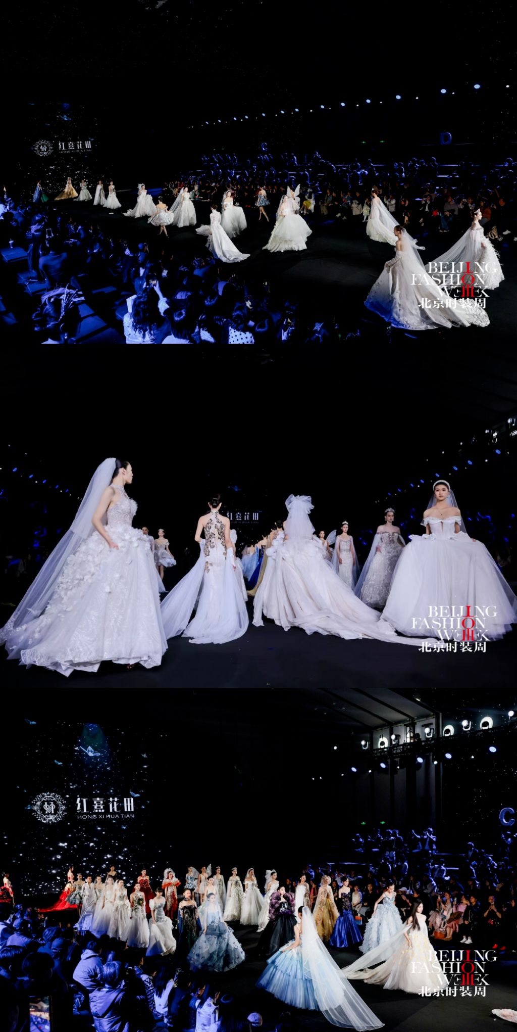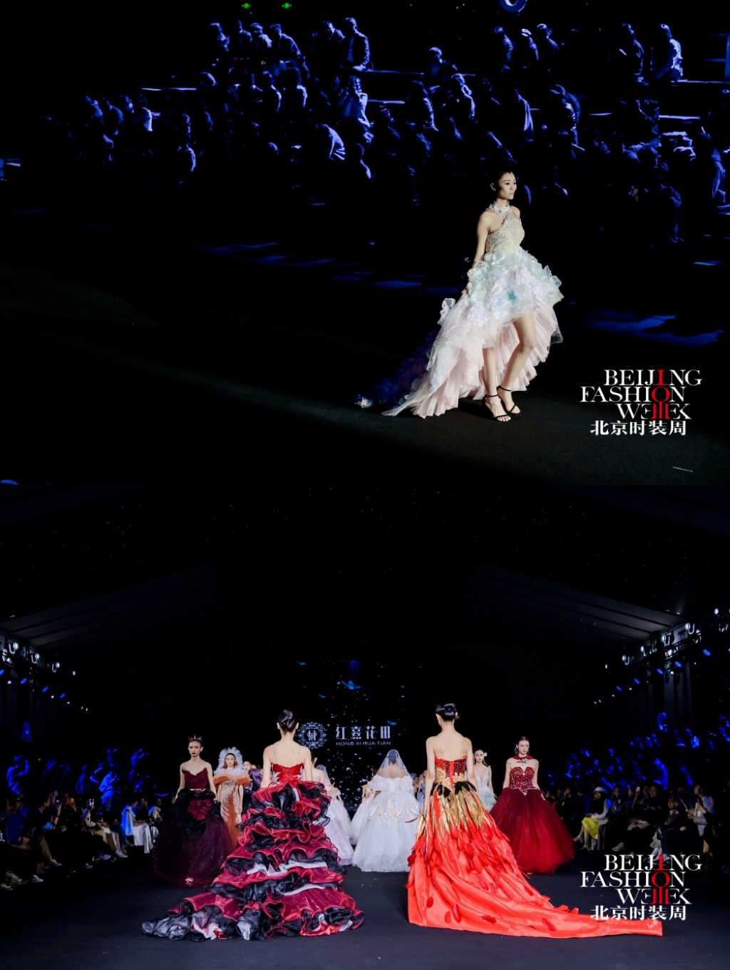 本季发布会以 “花田蕴生·绽放京彩”为主题,设计以“花田意象”为创作原点,将自然花田的生长与盛放转化为婚纱礼服的艺术语言,通过结构、色彩与材质的层层递进,构建一段从梦境萌芽到誓约永恒的情感叙事。在传统婚纱设计语言的基础上,系列作品融入立体装饰、结构塑形与现代工艺,使浪漫诗意与当代审美交织共生,呈现中国婚纱设计的新生力量。作品共呈现花影初梦、花海流光、炽焰花宴、花田誓约四大系列,以花田在不同光影时刻的变化隐喻爱情的不同阶段,在色彩与廓形的演进中描绘一段由初见、悸动到炽热、永恒的情感旅程。